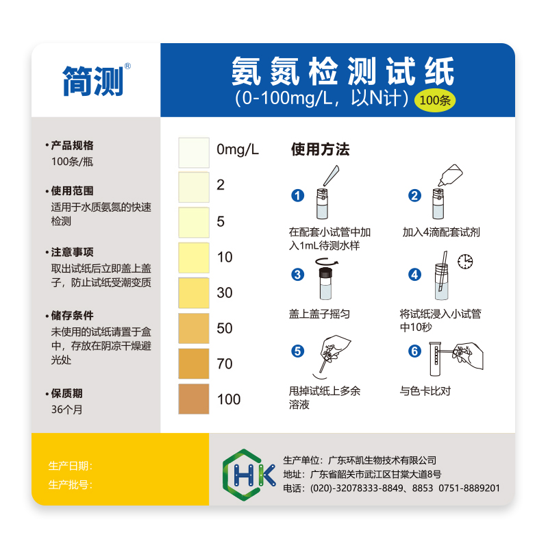 【產(chǎn)品名稱】簡(jiǎn)測(cè)®氨氮檢測(cè)試紙 0-100mg/L