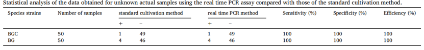 廣東省科學(xué)院微生物研究所(簡稱:廣微所)吳清平院士團(tuán)隊基于其豐富的菌種資源庫和全基因組數(shù)據(jù)庫,采用泛基因組分析方法,針對性挖掘出BGC和BG的特異性分子靶標(biāo),并據(jù)此建立了常規(guī)PCR及qPCR檢測方法,靶標(biāo)的特異性和靈敏度都得到了充分驗證(見原文鏈接與專利)。廣東環(huán)凱生物科技有限公司,作為院士成果轉(zhuǎn)換基地,進(jìn)一步研制出能同時檢測BGC和BG的雙重qPCR試劑盒(詳情請見官網(wǎng))
