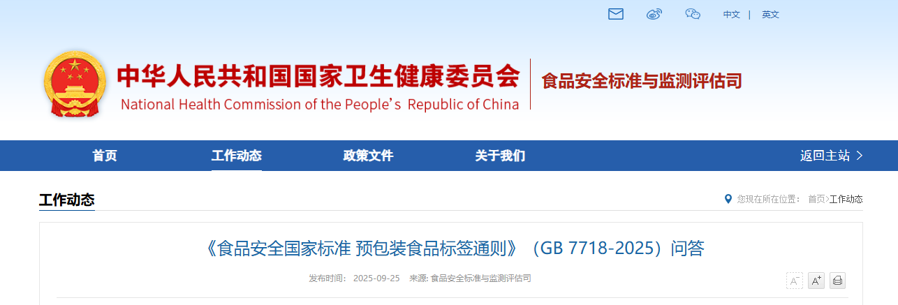 《食品安全國家標準 預包裝食品標簽通則》(GB 7718-2025)問答