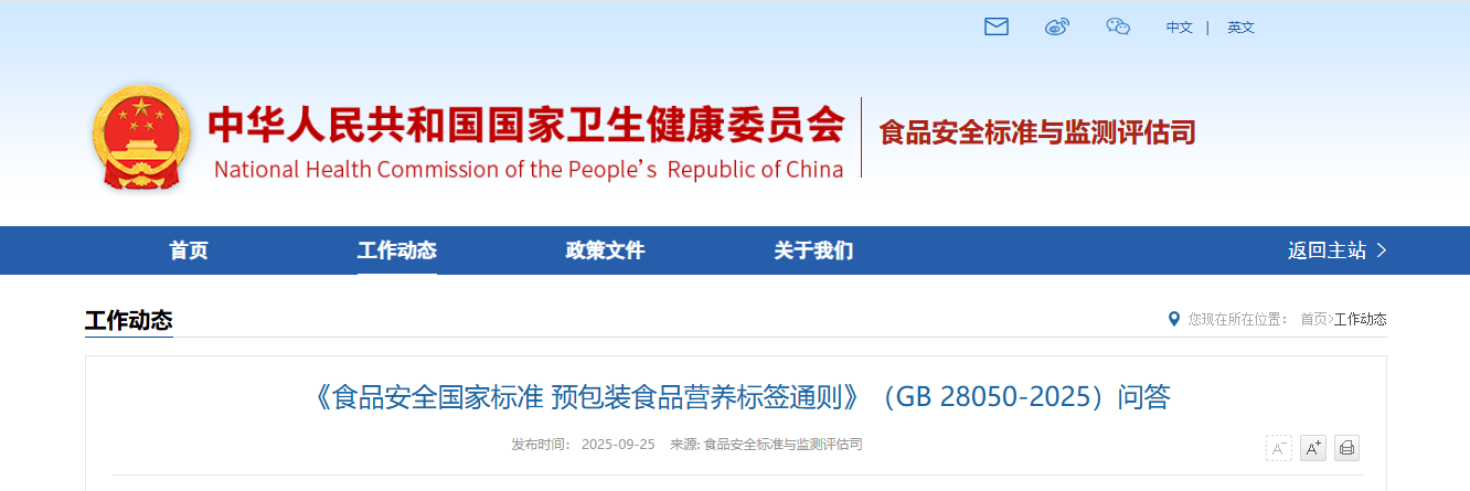 《食品安全國家標準 預包裝食品營養(yǎng)標簽通則》(GB 28050-2025)問答