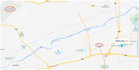 距西安咸陽(yáng)國(guó)際機(jī)場(chǎng),約30公里,打車40分鐘;