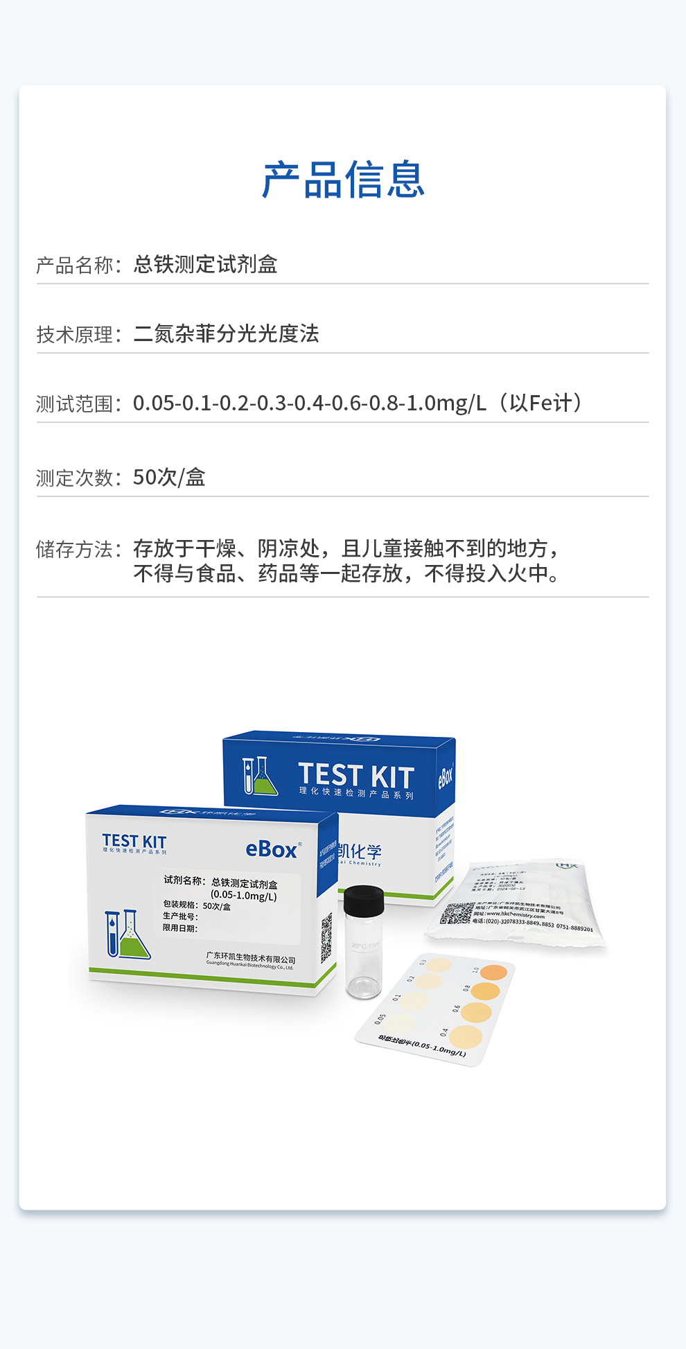 【產(chǎn)品名稱】總鐵測定試劑盒 0.05-1.0mg/L