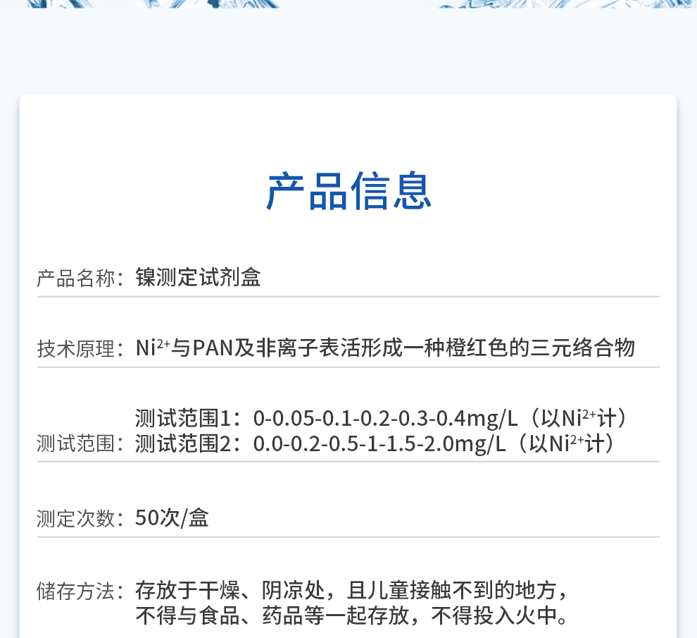 【產(chǎn)品名稱】鎳測(cè)定試劑盒 0-0.40mg/L