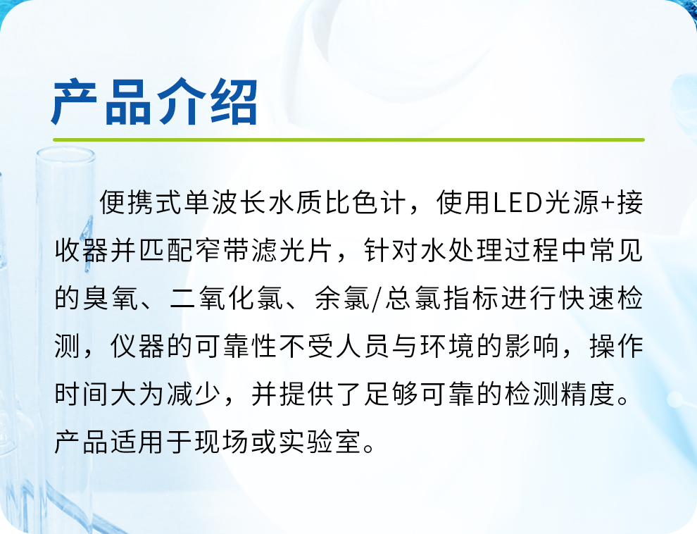 【應用范圍】適用于飲用水、醫(yī)院污水、工業(yè)廢水等水中余氯、臭氧、總氯和二氧化氯濃度的測定。液晶顯示屏以mg/L來直接顯示出樣品中各參數(shù)濃度。