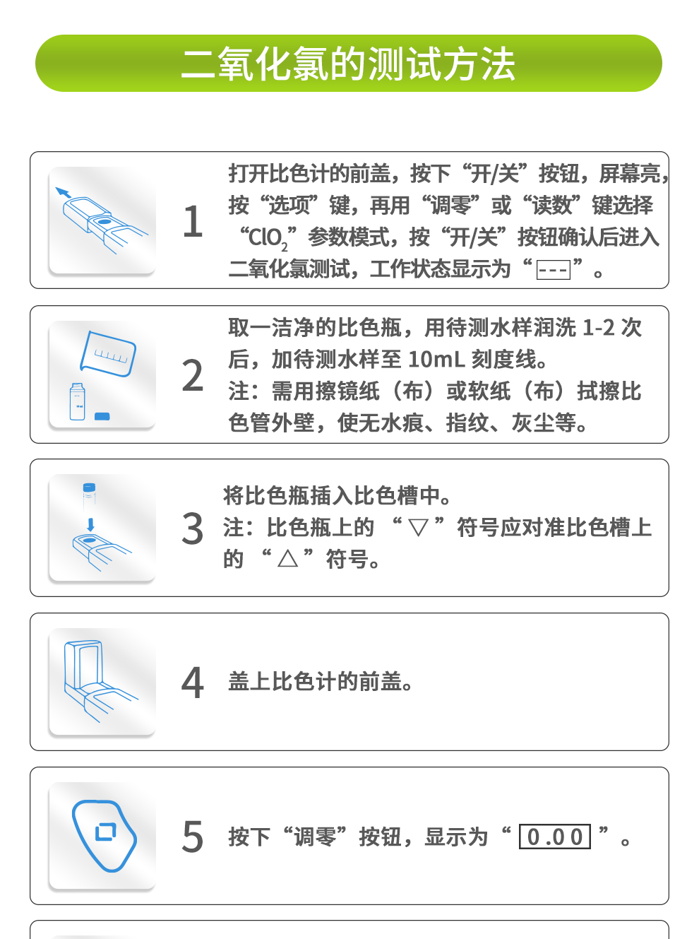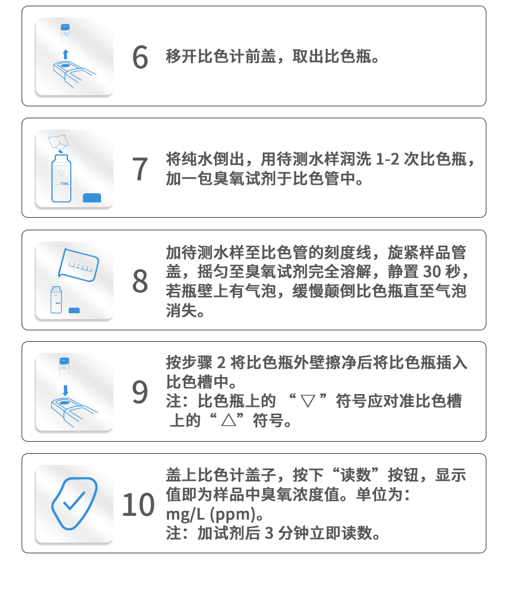 【測定范圍】臭氧:0.01~2.50mg/L、余氯、總氯:0.02~3.00mg/L、二氧化氯:0.04~5.00mg/L