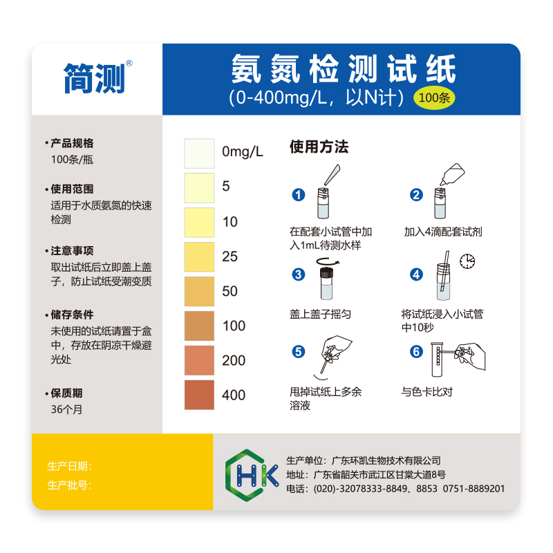 【產(chǎn)品名稱】簡測®氨氮檢測試紙 0-400mg/L