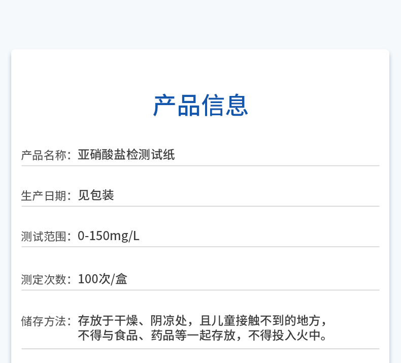 【名稱】簡(jiǎn)測(cè)®亞硝酸鹽檢測(cè)試紙 0-150mg/L