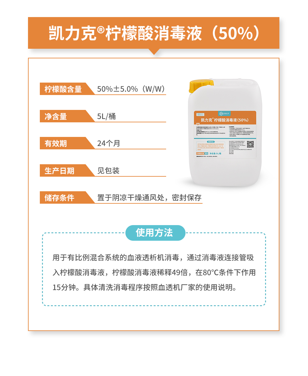 【產(chǎn)品名稱】凱力克®檸檬酸消毒液50%