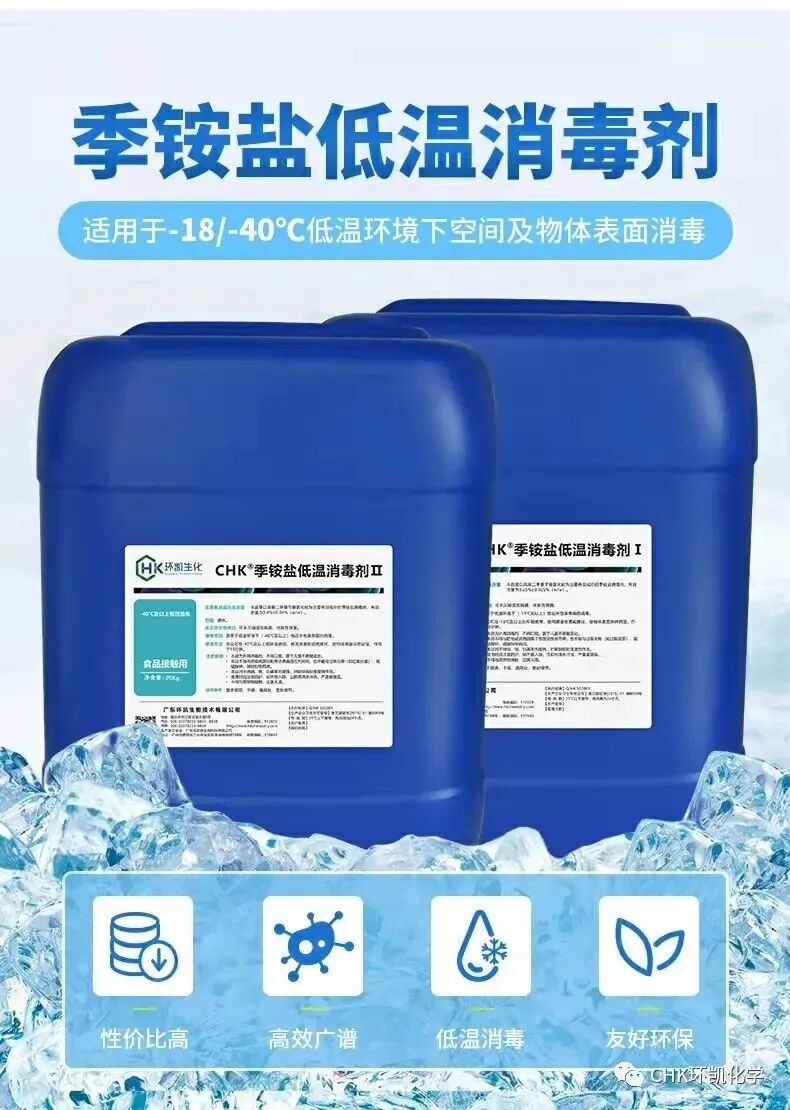環(huán)凱季銨鹽系列消毒劑可覆蓋醫(yī)療、食品加工、家居、水處理行業(yè),低溫型季銨鹽類消毒劑可覆蓋全冷鏈?zhǔn)称飞a(chǎn)、運(yùn)營并能在多種低溫環(huán)境下提供安全的防疫保障和發(fā)揮消毒滅菌作用。