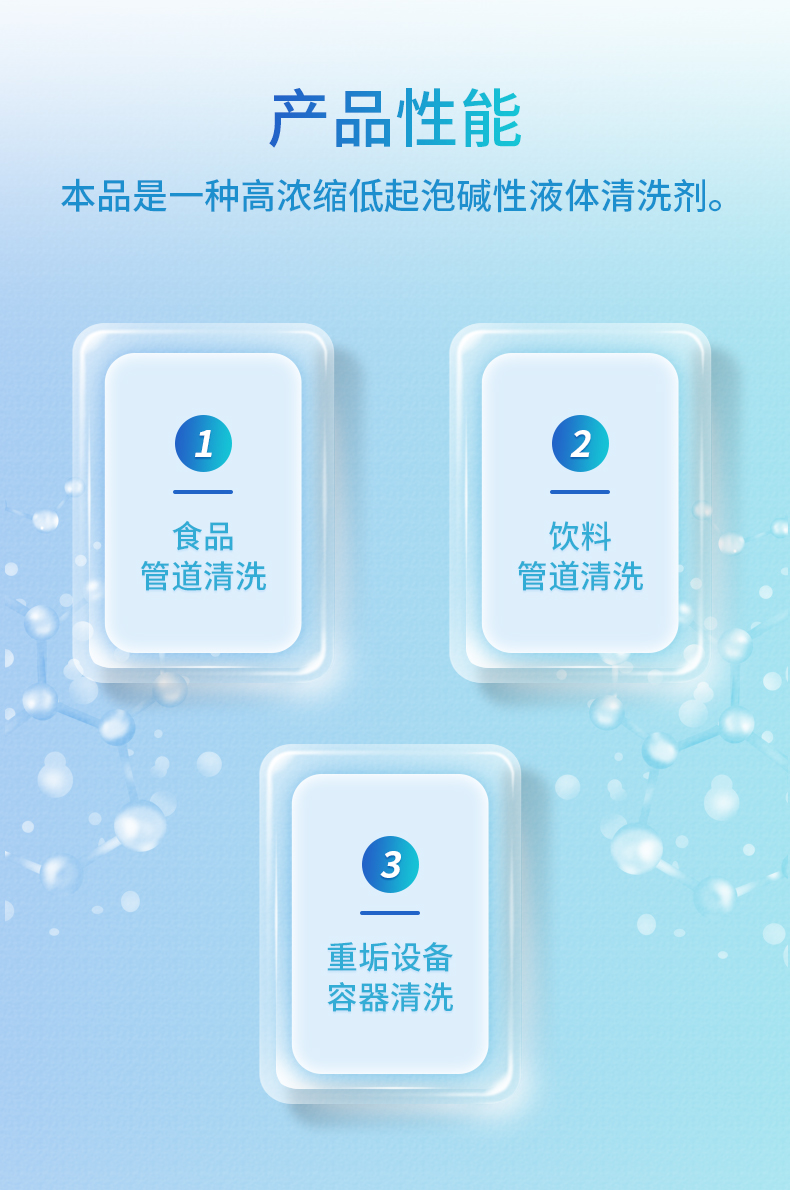 1、清洗效果好:CIP堿性清洗劑為濃縮液體堿性清洗劑,具有合理的平衡配比、卓越的耐硬水性能,對脂肪、蛋白質(zhì)等熱變性復雜污垢的分解去除力強。