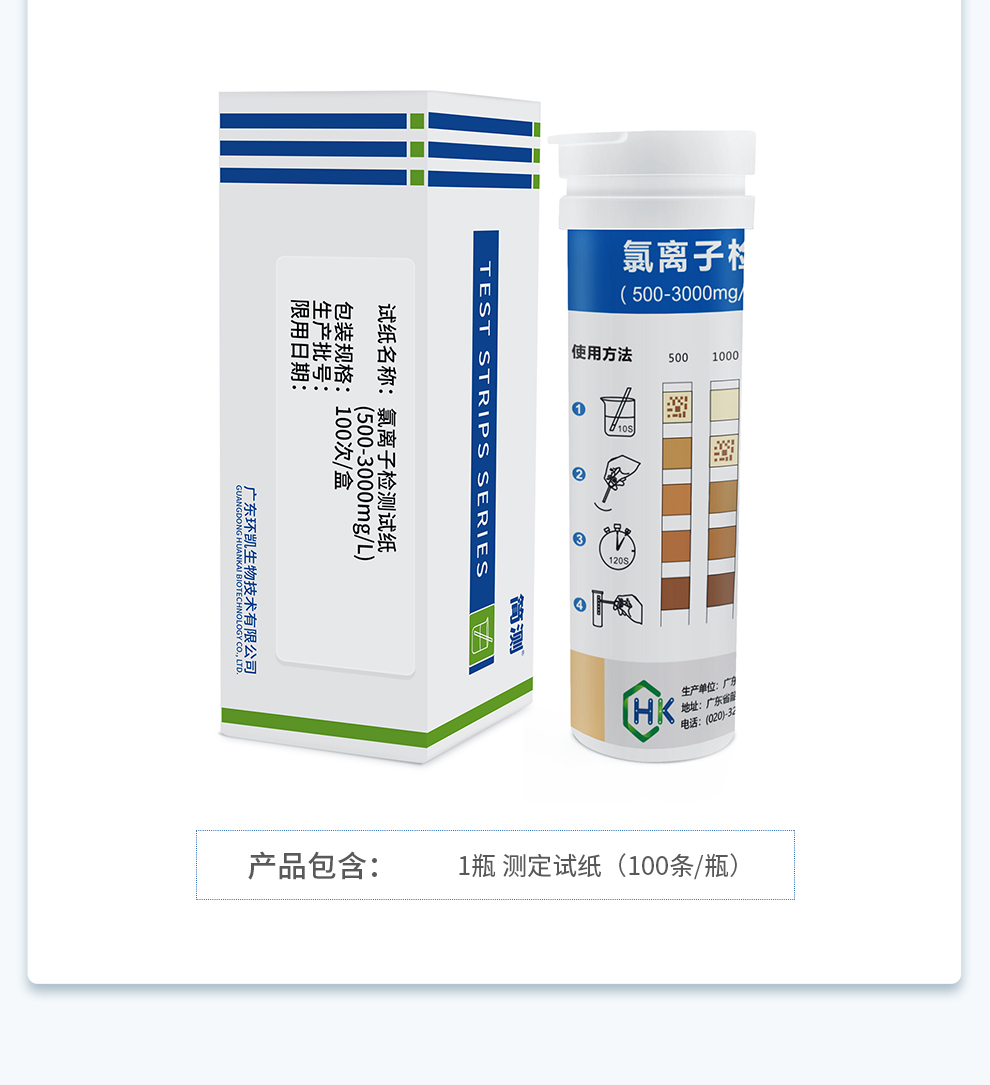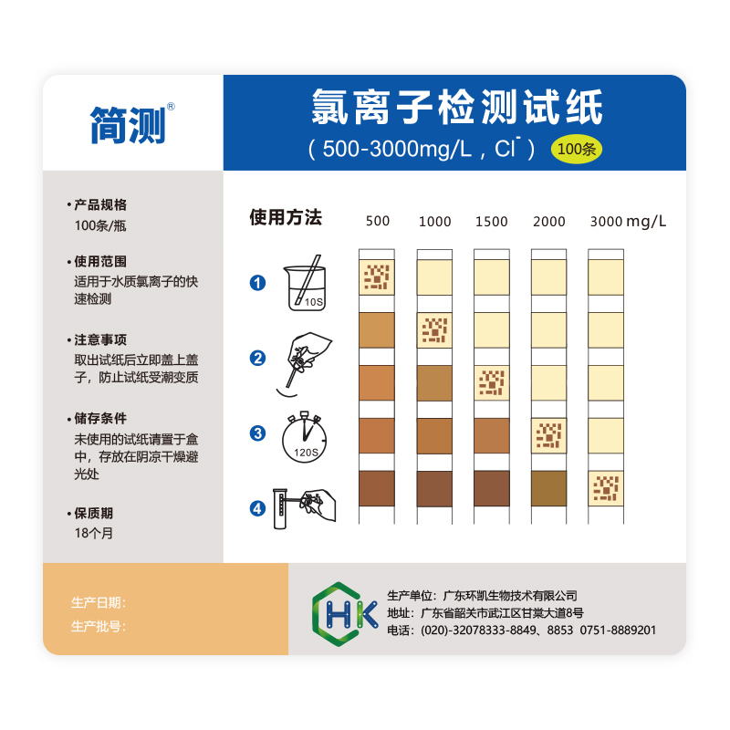 【產(chǎn)品名稱】簡(jiǎn)測(cè)®氯離子檢測(cè)試紙 500-3000mgL