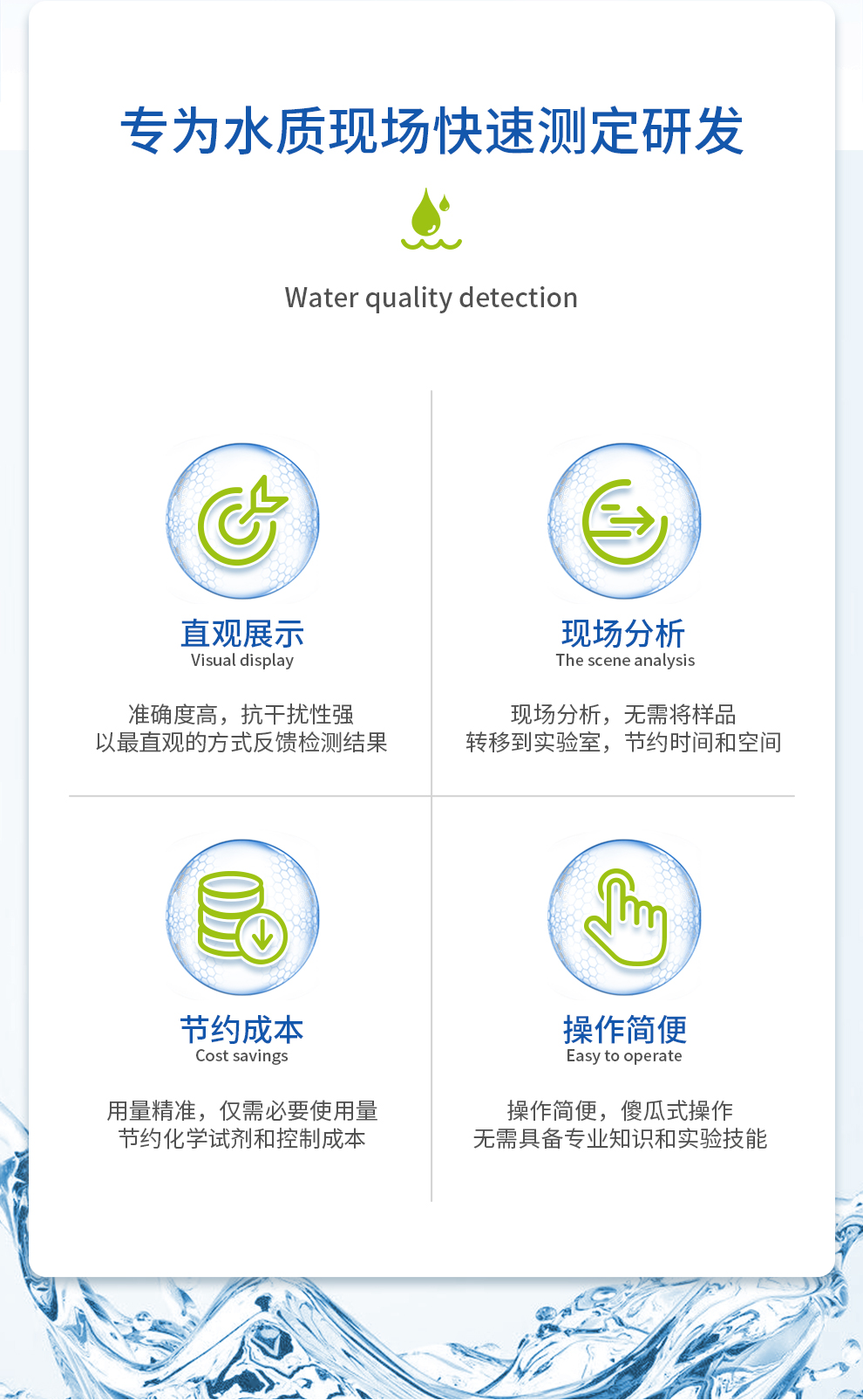 【應(yīng)用領(lǐng)域】用于農(nóng)田灌溉、養(yǎng)殖、生活飲用水、鍋爐水、地表水、地下水等水樣中有機(jī)物含量相對(duì)比較低的水樣。