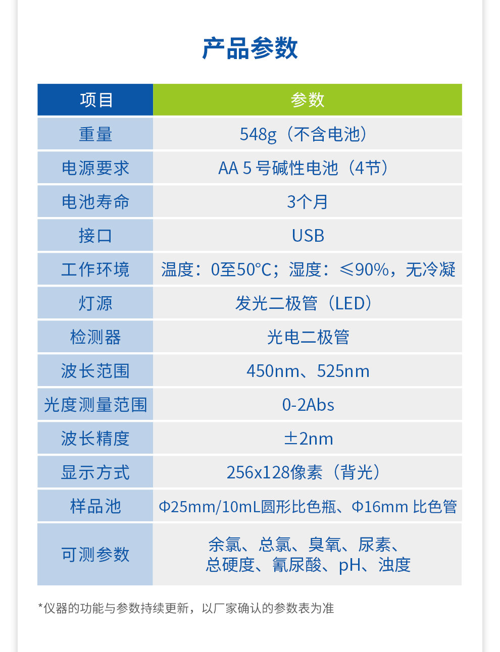 泳池水質(zhì)檢測(cè)儀可檢測(cè)余氯、總氯、臭氧、尿素、總硬度、氰尿酸、pH、濁度泳池水質(zhì)、SPA用水、溫泉用水、游樂園用水
