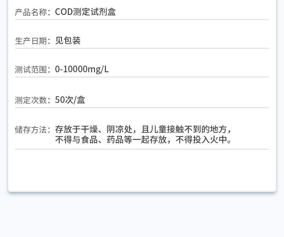【產(chǎn)品名稱】COD測(cè)定試劑盒 0-10000mg/L