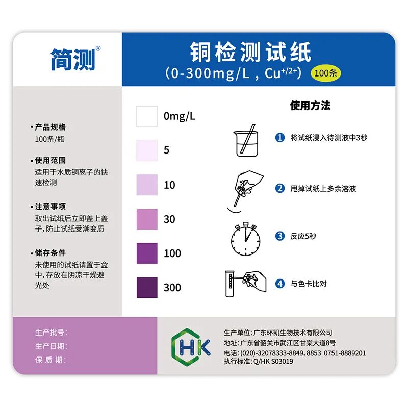 產(chǎn)品名稱:簡測®銅檢測試紙(0-300mg/L)