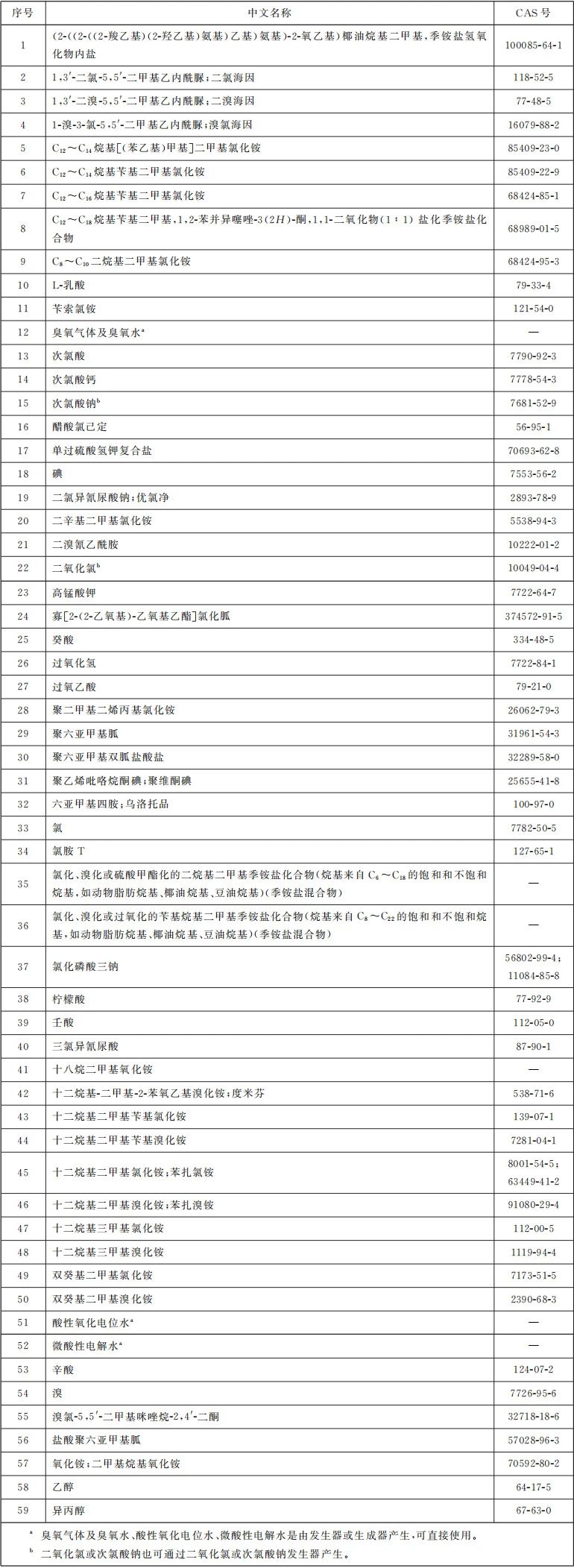 B.1 表 B.1規(guī)定了允許使用的食品用消毒劑有效成分名單。表 B.1中物質(zhì)的含結(jié)晶水物質(zhì)允許用作食品用消毒劑的有效成分。