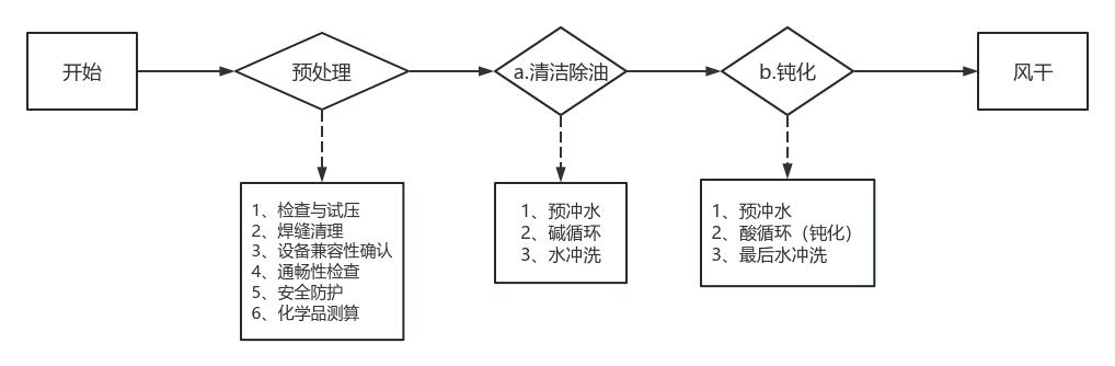 a.該部分程序的核心目的,是徹底清除設(shè)備在加工與安裝過程中沾染的任何污染物,包括:拋光蠟、打磨油等油性物質(zhì),加工產(chǎn)生的金屬碎屑與鐵屑,吸附的灰塵,以及安裝焊接形成的焊渣。