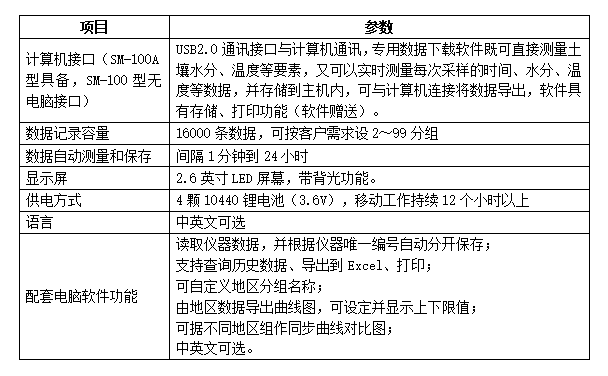 環(huán)凱SMT-100土壤墑情速測(cè)儀功能特點(diǎn):
