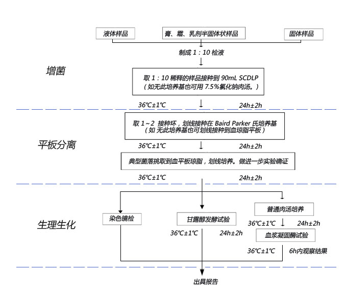 圖1:《化妝品衛(wèi)生規(guī)范》(2007年版)金黃色葡萄球菌檢驗流程圖
